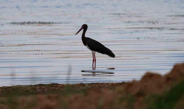 Kırıkkale'de baraj kıyısında kara leylek objektiflere takıldı