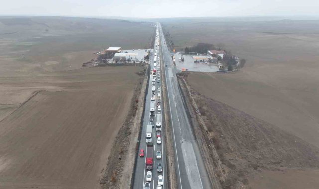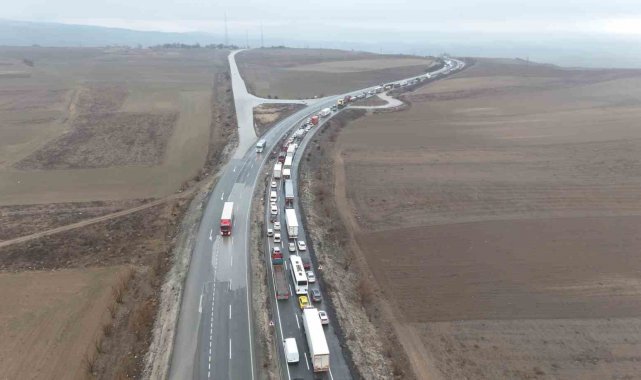 Kaza sebebiyle kapatılan karayolu, aracın vinçle olay yerinden kaldırılmasının ardından yeniden ulaşıma açıldı. Kilometrelerce oluşan araç kuyruğu ise dron ile havadan görüntülendi. Kazaya ilişkin inceleme başlatıldı.