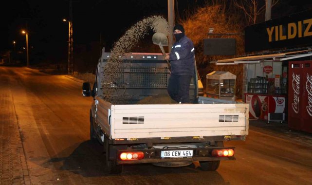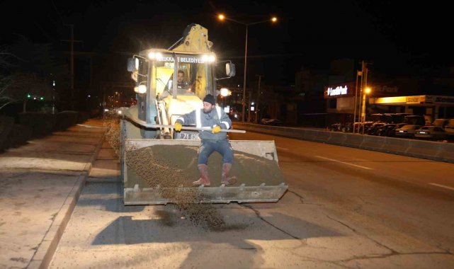 Kırıkkale'de hava sıcaklığının eksi 6 dereceye düşmesiyle birlikte, belediye ekipleri yollarda buzlanmaya karşı tuzlama ve solisyon çalışması gerçekleştirdi.