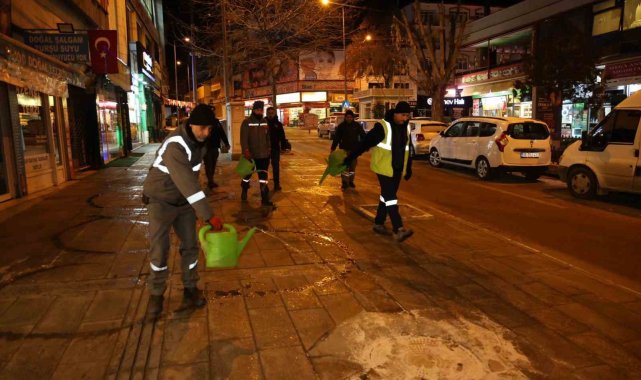 Belediye Başkanı Ahmet Önal, çalışmalara ilişkin yaptığı açıklamada, "Ekiplerimiz, yollarımızda buzlanma ve don riskine karşı aralıksız çalışmaya devam ediyor. Buzlanmaya karşı özveriyle mücadele eden tüm ekip arkadaşlarıma teşekkür ediyorum" ifadelerini kullandı.