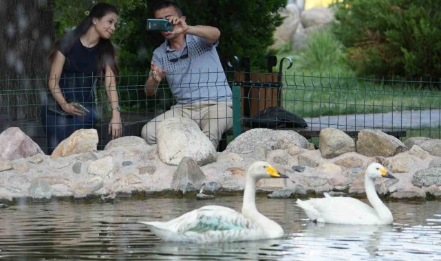 Kırıkkale'de Şehitler Parkı'nın simgesi haline gelen "Zarif" ve "Zarife" isimli kuğular, parkı ziyaret eden vatandaşların ilgisini çekiyor.