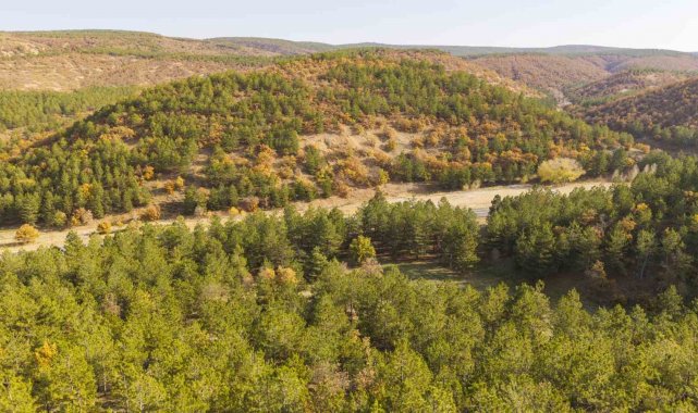 Sulakyurt ilçesinde bulunan ormanlık alanlarda yeşil, turuncu ve kahverenginin bir arada oluşturduğu doğal ahenk, kartpostallık manzaralar sundu. Güneş ışınlarının vurduğu anlarda ise bölge, altın sarısına bürünerek büyüleyici bir güzellik kazandı.