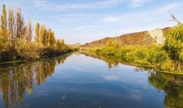 Kırıkkale'de sonbaharın renkleriyle sarı, turuncu ve yeşile bürünen doğa, Kızılırmak ve ormanlık alanlarla kartpostallık manzaralar oluşturdu.