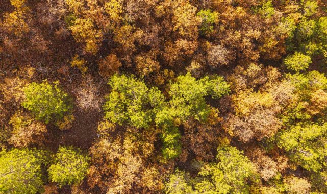 Kırıkkale'de sonbaharın eşsiz renkleri doğayı adeta tabloya çevirdi. Yahşihan ilçesinde havadan kaydedilen görüntülerde, sarı, turuncu ve yeşilin tonlarıyla süslenen ağaçlar ile içinden geçen Kızılırmak, kartpostallık manzaralar oluşturdu. Görüntülerde, yaprakların su yüzeyine düşmesiyle birlikte doğanın renk cümbüşü ortaya çıktı. Irmağın kıvrılarak uzandığı vadi boyunca sararan ağaçlar, mevsimin tüm güzelliğini gözler önüne serdi.