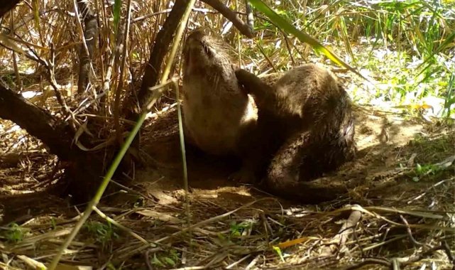 Kırıkkale'de, kırsal alanlara yerleştirilen fotokapanlarla nesli tükenme tehlikesi altında bulunan su samurları yuvasında görüntülendi.