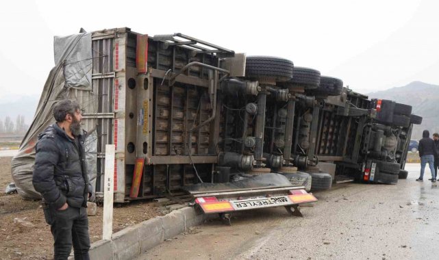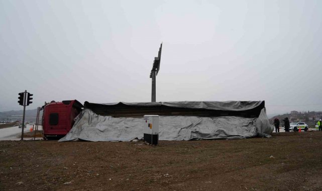 Kırıkkale'de kontrolden çıkarak devrilen tırın sürücüsü kazayı yara almadan atlattı.