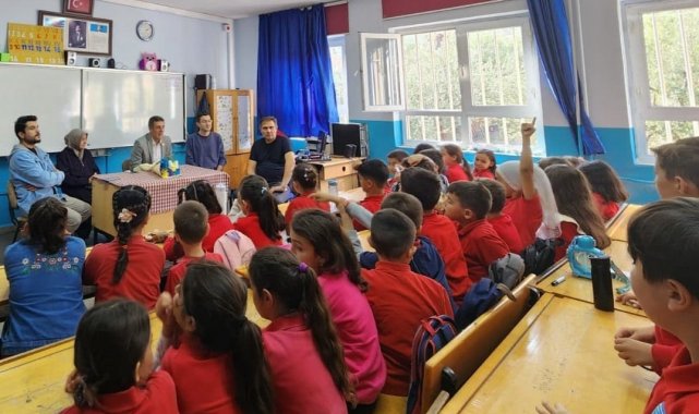 Etkinliğin sonunda Okul Müdürü Esra Yıldırım ve öğrenciler Kadriye Mahallesi Muhtarı Yasin Sarı ve eşi Ayşen Sarı'ya çiçek takdim ettiler.