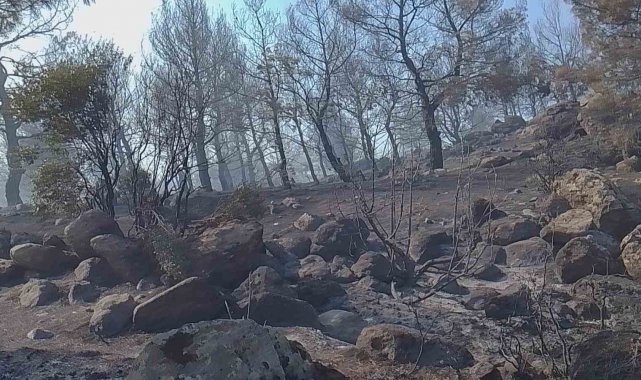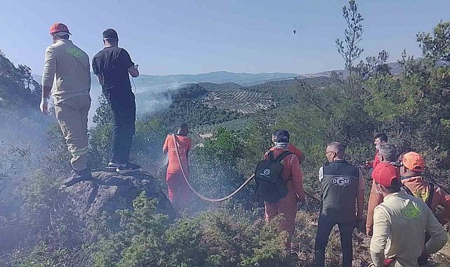 Manisa'nın Kırkağaç ilçesinde başlayan orman yangını İzmir Orman Bölge Müdürlüğü ekiplerinin havadan ve karadan müdahalesiyle kontrol altına alınırken soğutma çalışmaları devam ediyor.