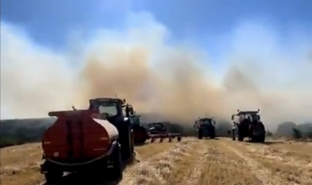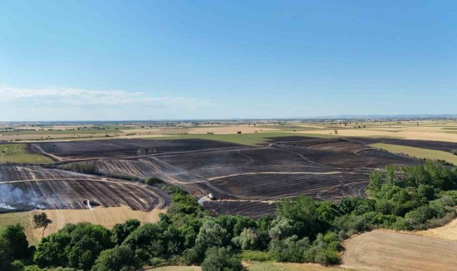 Kırklareli'nin Lüleburgaz ilçesinde hasat edilmiş buğday tarlasında başlayıp, ağaçlık alana sıçrayan anız yangını, havadan ve karadan müdahaleyle söndürüldü.