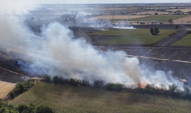 Yangın, ilçeye bağlı Hamitabat köyü ile Ayvalı köyü arasında bulunan alanda meydana geldi. Hasat edilmiş buğday tarlasından dumanların çıktığını gören çevre sakinleri, durumu 112 Acil Çağrı Merkezine bildirdi. İhbar üzerine olay yerine jandarma ve itfaiye ekipleri sevk edildi. Yangın rüzgarın etkisiyle kısa sürede büyürken, dumanlar nedeniyle bir süreliğine İstanbul-Edirne TEM Otoyolu Edirne istikametinde trafik akışı durdu. Ormanlık alana yakın nokta olduğu için bölgeye helikopter yönlendirildi. Köy sakinleri ve itfaiye ekipleri karadan, helikopter ise havadan müdahale ederek yangını söndürdü. Yangının kontrol altına alınmasının ardından İstanbul-Edirne TEM Otoyolu Edirne istikametine trafik akışı tekrar sağlandı.