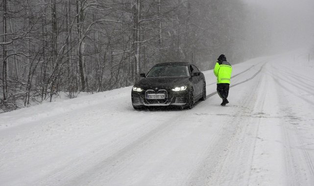 Kırklareli'nin yüksek kesimlerinde etkili olan kar yağışı hayatı olumsuz etkiliyor. Demirköy ilçesi yakınlarında kar yağışı nedeniyle sürücüler yolda ilerlemekte güçlük çekerken jandarma ekipleri kar lastiği konusunda uyarılarda bulundu.