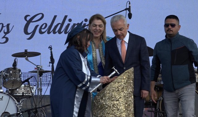 Konuşmaların ardından Vali Turan ve Rektör Prof. Dr. Rengin Ak, üniversiteden birincilikle mezun olan Gülperi Patan'a plaket takdiminde bulundu. Ardından Patan, mezuniyet kütüğüne isimlik çaktı.