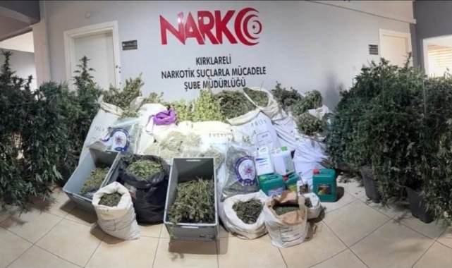 Edinilen bilgiye göre, Kırklareli Amniyet Müdürlüğü Narkotik Suçlarla Mücadele Şubesi ve İstihbarat Şubesi ekiplerince koordineli olarak yürütülen çalışmalar neticesinde şüphelilere ait ikamet ve eklentilerinde arama yapıldı. Aramalarda 54 kilogram esrar, 28 kök Hint keneviri, 1 adet hassas terazi ile kenevir yetiştirmede kullanılan iklimlendirme sistemleri ele geçirildi.