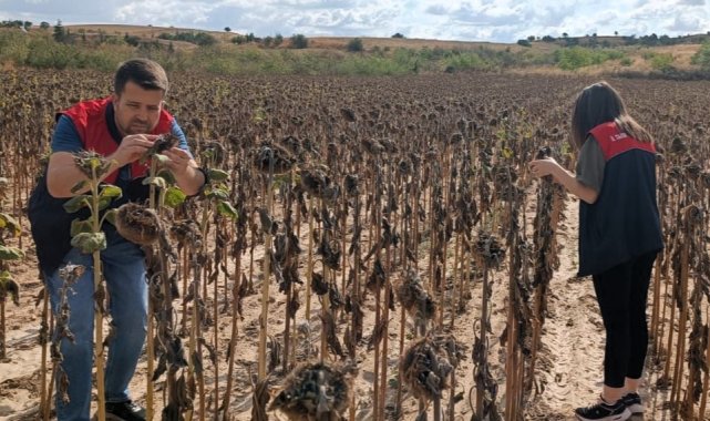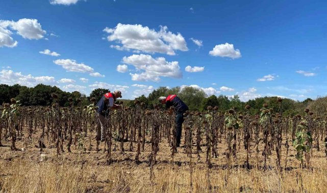 Kırklareli Tarım ve Orman İl Müdürlüğü teknik personeli, kuraklık sebebiyle üretimde yaşanan olumsuzlukların tespiti amacıyla merkez köylerdeki ayçiçeği tarlalarında çalışmalarına devam ediyor.