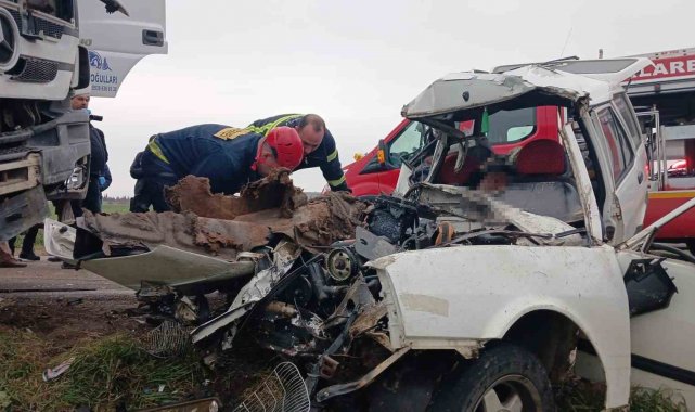 Edinilen bilgilere göre, merkeze bağlı Eriklice köyü yolu üzerinde seyir halindeki otomobil, henüz belirlenemeyen bir nedenle karşı yönden gelen kamyonla çarpıştı. Kazada otomobilde bulunan kişiler araç içerisinde sıkıştı. İhbar üzerine olay yerine 112 Acil Sağlık, itfaiye ve jandarma ekipleri sevk edildi.