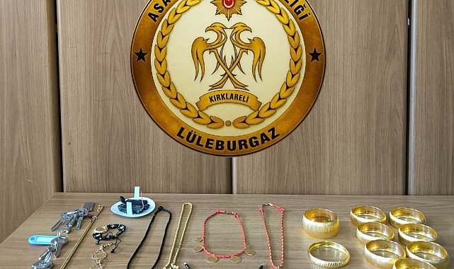 Lüleburgaz ilçesinde bir şüphelinin evlerden hırsızlık yaptığı bilgisi üzerine polis ekipleri harekete geçti. Ekipler şüpheliye yönelik operasyon düzenledi. Şüphelinin evinde yapılan aramada 9 bilezik, 2 altın bileklik, beşi bir yerde, yarım altın, küpe, kolye ile 9 çeyrek altın ele geçirildi.
