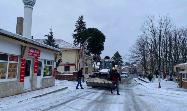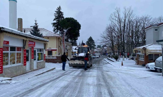 Kırklareli'nin Demirköy ilçesinde kar yağışının ardından belediye ekipleri tuzlama ve yol açma çalışmalarını aralıksız sürdürüyor.