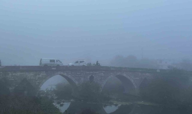 Babaeski ilçesindeki tarihi Cedit Ali Paşa Camii ve Lüleburgaz'daki Sokullu Mehmet Paşa Köprüsü sisin içinde gizlendi.