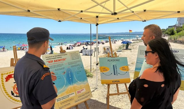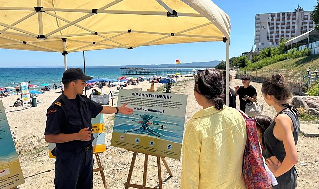 Kırklareli'nin Demirköy ilçesine bağlı İğneada beldesinde Sahil Güvenlik Karakol Komutanlığı ekipleri, halk plajına stant kurdu. Ekipler yerli ve yabancı turistleri boğuma vakalarına karşı rip akıntısı konusunda bilgilendirerek broşür dağıttı.