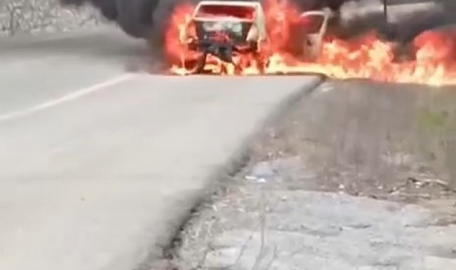 Kırklareli'nde seyir halindeyken yangın çıkan araç küle döndü