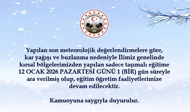 Yetkililer, alınan kararın öğrenci ve vatandaşların can güvenliğini sağlamak amacıyla alındığını belirtirken, taşımalı eğitim kapsamı dışında kalan okullarda eğitim-öğretim faaliyetlerinin planlandığı şekilde devam edeceğini bildirdi.