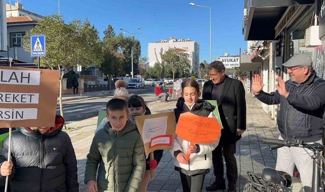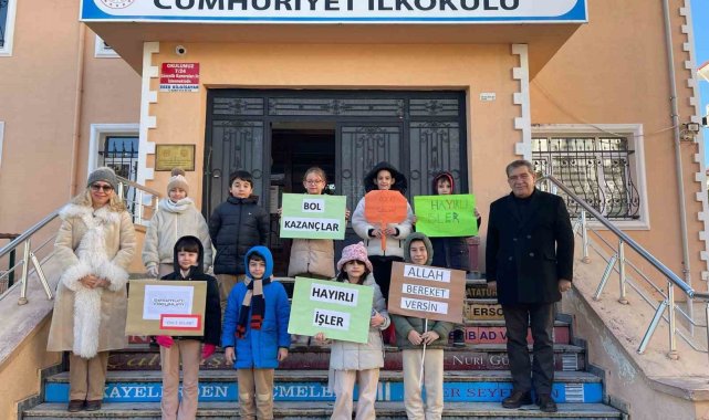 Ellerinde selamlaşma cümlelerinin yazılı olduğu renkli kartonlarla esnafa ve vatandaşlara selam vererek iyi dileklerde bulunan Cumhuriyet İlkokulu öğrencileri, toplumsal iletişim ve nezaket kültürünün güçlendirilmesinde önemli katkı sundu.