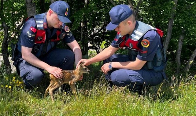 Kırklareli'nde jandarma ekiplerince yol kenarında bulunan karaca yavrusu koruma altına alındı.