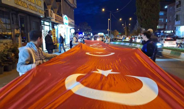 Kırklareli'nde Gazze'ye destek yürüyüşü yapıldı, yürüyüşte metrelerce bayrak açıldı.