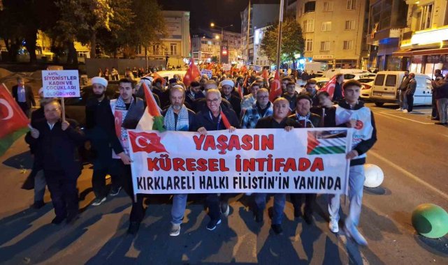 Kırklareli'de Filistin'e Destek Platformu tarafından Gazze'ye destek yürüyüşü gerçekleşti. Karagöz Parkı önünde toplanan vatandaşlar Millet Bahçesine yürüdü. Yürüyüşte metrelerce Türk bayrağı açıldı, sloganlar atıldı.