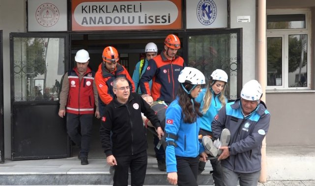 Kırklareli'nde "Afetler ve Dayanıklılık Ayı" etkinlikleri kapsamında düzenlenen deprem tatbikatı yapıldı. Anadolu Lisesinde gerçekleştirilen tatbikatta, senaryo gereği okulda alarm çalmasının ardından öğrenciler sınıflarında "çök-kapan-tutun" hareketini uyguladı. Ardından öğretmenlerin koordinesinde öğrencileri hızlı bir şekilde tahliye etti.