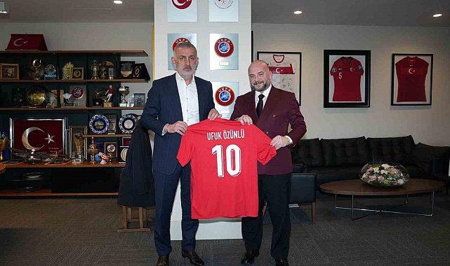 Riva Hasan Doğan Millî Takımlar Kamp ve Eğitim Tesisleri'nde gerçekleşen görüşmelerin sonunda Ufuk Özünlü, TFF Başkanı Hacıosmanoğlu ve TFF Başkan Vekili Otyakmaz'a birer atkı takdim ederken; TFF Başkanı Hacıosmanoğlu ve TFF Başkan Vekili Otyakmaz da Ufuk Özünlü'ye üzerlerinde isminin yazılı olduğu birer A Millî Takım forması hediye etti.