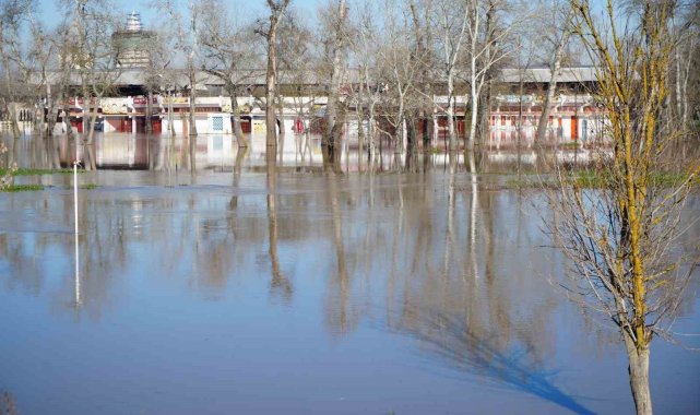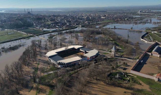 Edirne'de ve Bulgaristan'da etkili olan yağışların ardından Tunca Nehri taştı, ata sporunun kalbi olarak bilinen Kırkpınar Yağlı Güreşleri'nin yapıldığı Sarayiçi Er Meydanı sular altında kaldı.