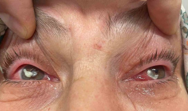 Kocaeli'nde yaşayan 52 yaşında kadın, iddiaya göre uzağı görememesi sebebiyle kullandığı gözlükten kurtulmak için yaklaşık 7 ay önce kırlangıç otunun suyunu gözlerine damlattı ve bir anda göremez hale geldi. Önce gözlerinde yanma, batma hisseden ve sonrasında açamaz hale gelen kadın hemen hastaneye koştu. O dönem Kocaeli'nde çalışan Göz Hastalıkları Uzmanı Doç. Dr. Ömer Faruk Yılmaz ve ekibi hastaya müdahale ederken korneanın en dış katmanı olarak ifade edilen kornea epitelinin zarar gördüğü belirlendi. Göze yabancı cisim, kimyasal madde kaçması ya da enfeksiyon durumlarında gözü temizlemek amacıyla uygulanan göz yıkama tedavisi gerçekleştirildi. Yaklaşık 2 haftalık tedavinin ardından hasta sağlığına kavuştu. Doç. Dr. Yılmaz, hastasının yaşadığı süreç ve tedavisine ilişkin bilgi verdi. Yılmaz, hekim önerisi olmadan herhangi bir ürün kullanılmaması gerektiğine dikkat çekerek önemli uyarılarda bulundu. Öte yandan hastanın göz bebeğinin beyazlığı ve göz akının ise kızardığı hali fotoğraf karesine yansıdı.