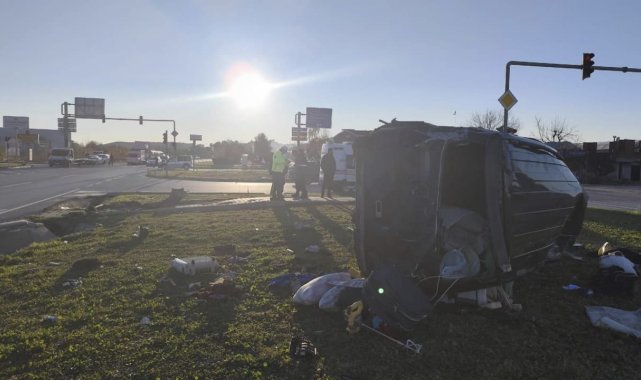 Kırmızı ışık ihlali yapan aracın çarptığı minibüs devrildi: 5 yaralı