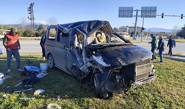 Kaza, Manavgat-Antalya D-400 kara yolu Taşağıl kavşağında meydana geldi. Edinilen bilgiye göre, Antalya istikametinden gelip yeni Antalya-Konya yoluna dönmekte olan Ahmet A.'nın kullandığı 07 YT 069 plakalı hafif ticari araç, Kadir E.'nin kullandığı 42 AGE 887 plakalı minibüse yandan çarptı. Güvenlik kamerasına yansıyan kazada kırmızı ışık ihlali yaptığı belirlenen hafif ticari aracın çarptığı minibüs kavşaktaki refüje devrildi. Kazada hafif ticari aracın sürücüsü Ahmet A. ile minibüste yolcu olarak bulunan Yusuf E., Mikail E., İbrahim E. ve Hakan E. yaralandı. Yaralılar, sağlık ekiplerinin olay yerindeki müdahalesinin ardından ambulansla hastaneye kaldırıldı.
