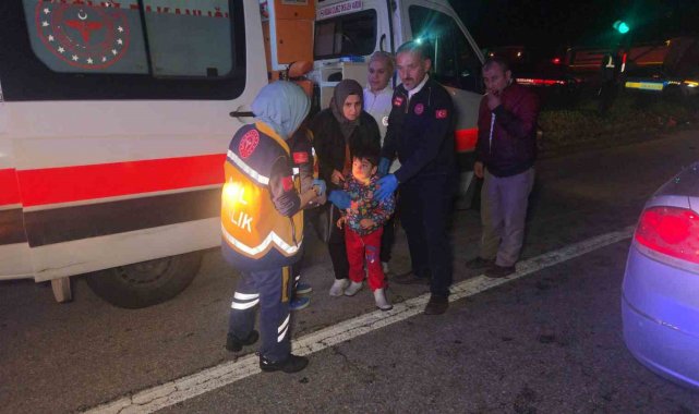 Bursa'nın Orhangazi ilçesinde kırmızı ışıkta bekleyen otomobile, başka bir otomobilin çarptığı kazada 1'i çocuk 5 kişi yaralandı.