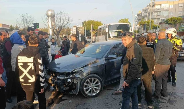 Kırmızı ışıkta geçen kamyonet ile otomobilin çarpışma anı kamerada: 1 yaralı
