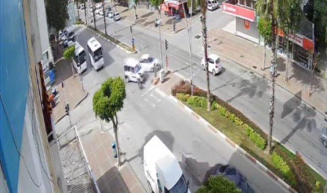 Antalya'nın Manavgat ilçesinde hafif ticari araç ile otomobilin çarpışması sonucu meydana gelen kazada şans eseri yaralanan olmadı. Kaza anı güvenlik kamerasına saniye saniyesine yansırken, çok sayıda araç sürücüsünün, kazazedelere yardım etmek yerine yollarına devam etmesi dikkat çekti.