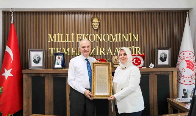Görüşmenin sonunda Esra Uzun, Faruk Özlü'ye Osmanlı arşivlerine ait 1545 tarihli Üskübü'de (Konuralp) pirinç yetiştiren çiftçilerin kayıt defterinin olduğu tablo hediye edildi.