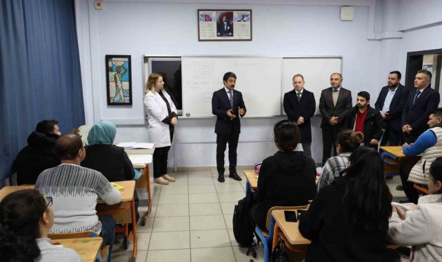 Kırşehir Valisi Murat Sefa Demiryürek de E-KPSS kurs alanını ziyaret ederek çalışmaları yerinde inceledi ve yetkililerden bilgi aldı.