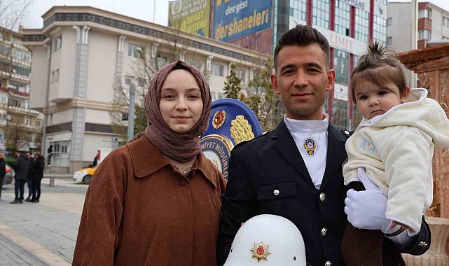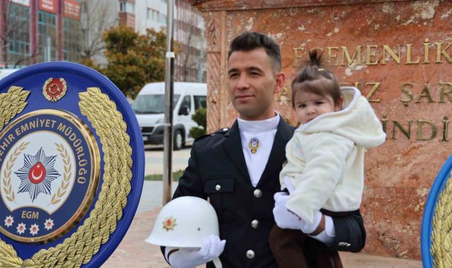 Kırşehir'de Türk Polis Teşkilatı'nın 180. yıl kutlama etkinlikleri çerçevesinde düzenlenen çelenk sunma töreninde 9 aylık Ayşe Beren bebek ilgi odağı oldu.