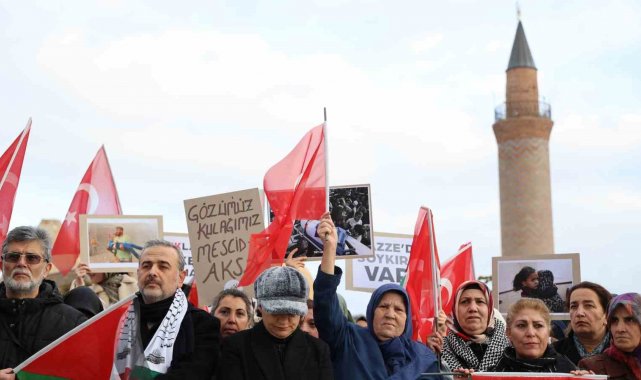 Cacabey Meydanı'nda bir araya gelen Kudüs Platformu adına konuşan Nurullah Talha Erbaşı, İsrail'in Gazze'ye yönelik sürdürdüğü saldırılarda 50 binden fazla sivilin hayatını kaybettiğini, 115 binden fazla kişinin yaralandığını söyledi. Erbaşı, "İsrail ordusunun saldırıları yeniden saldırı başlatmasından itibaren yaşlı, kadın ve çocuk olmak üzere bin 163 Filistinli hayatını kaybetti, 2 bin 735 kişi yaralandı. Yahudi kökenli aktivistler bile Siyonizm'in ırkçı ve işgalci politikalarına karşı seslerini yükseltiyor. Güney Afrika'da, ırkçı rejiminin acılarını yaşamış bir halk, Filistin'in mücadelesini kendi mücadeleleriyle özdeşleştirip dayanışma gösteriyor. En azından bu protestolar, insanlık onurunun halen ayakta olduğunu kanıtlıyor. İslam dünyasının liderleri ise işgalci İsrail'le normalleşme yarışına giriyor" dedi.