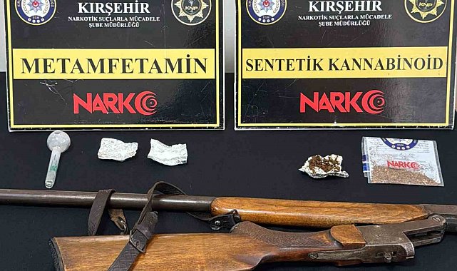 Narkotik Suçlarla Mücadele Şube Müdürlüğü ile İstihbarat Şube Müdürlüğü ekiplerince yürütülen planlı çalışmalar kapsamında, çevre illerden temin ettikleri uyuşturucu maddeleri kente getirerek Kırşehir genelinde ticaretini yaptıkları tespit edilen şüphelilere yönelik eş zamanlı operasyon düzenlendi. Operasyonda A.K., M.T., A.K., K.A., R.Ç., Ü.Ç., B.T., E.D. ve Ş.E. yakalandı. Şüphelilere ait 10 ikamet ve 1 iş yerinde yapılan aramalarda 2 parça halinde 5,59 gram uyuşturucu madde, 2 parça halinde 0,95 gram uyuşturucu madde, 1 uyuşturucu kullanım aparatı ve 1 ruhsatsız av tüfeği ele geçirildi.