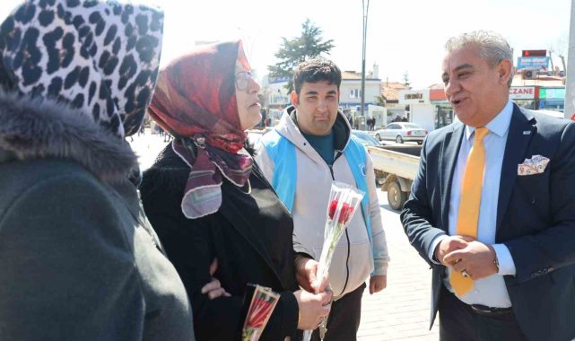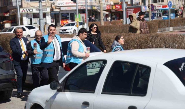 Kırşehir'de özel bireylerden kadınlara gül ve karanfil