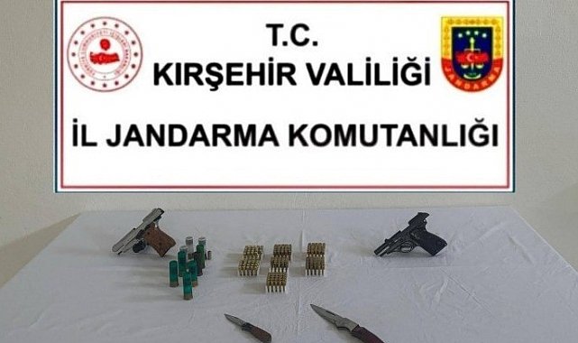Kırşehir İl Jandarma Komutanlığı ekiplerince yürütülen çalışmalar kapsamında ruhsatsız silah taşıdığı tespit edilen şahsa yönelik operasyon düzenlendi. Akpınar İlçe Jandarma Komutanlığı ekiplerince yapılan çalışmalarda, A.U.'nun ruhsatsız silah bulundurduğu bilgisine ulaşıldı. Alınan arama kararıyla şüpheliye ait ev ve araçta arama yapıldı. Aramalarda; 1 adet ruhsatsız kuru sıkı tabanca, 1 adet ruhsatsız tabanca, 3 adet şarjör, 1 adet ses fişeği, 167 adet tabanca fişeği, 9 adet av tüfeği kartuşu, 2 adet bıçak ele geçirildi.