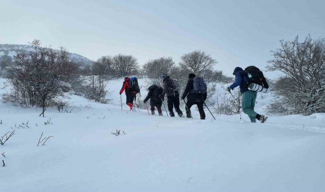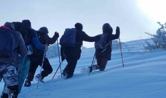 Kırşehir'de faaliyet gösteren dağcılar, 2026 yılının ilk kar yağışı sonrasında karla kaplı Gönül Dağı'na tırmanıp İstiklal Marşı okudu.