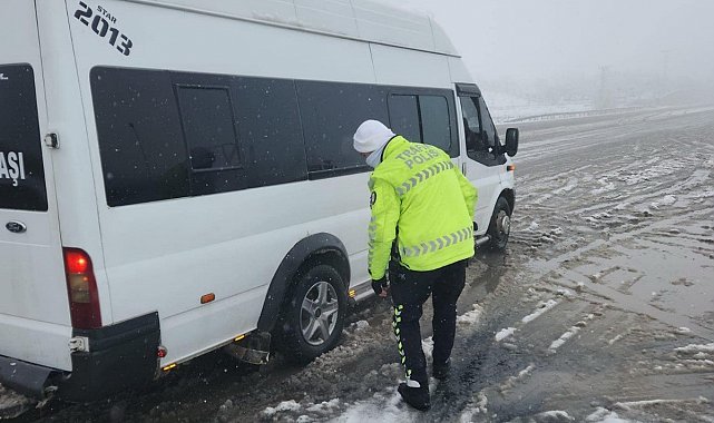 Birkaç gündür Adıyaman'ın Besni ilçesinde etkili olan kar yağışından dolayı kar kalınlığı 20 santimi buldu. Kar yağışı sonrası kazaların yaşanmaması ve araçların yollarda mahsur kalmaması için İlçe Emniyet Müdürlüğüne bağlı trafik polisleri harekete geçti. Polis ekipleri, ilçe merkezinde Besni- Adıyaman, Besni- Gaziantep ve Besni Gölbaşı Karayollarında denetimler yaptı. Yapılan denetimlerde ağır vasıtalı araçlar ile ticari araçların kış lastiği kontrolleri yapıldı. Kış lastiği kullanmayan araçların ise geçişlerine izin verilmedi. Denetimlerin sıklıkla devam edeceği, kazaları yaşanmaması adına ekiplerin güzergahta önlemler alacakları belirtildi.
