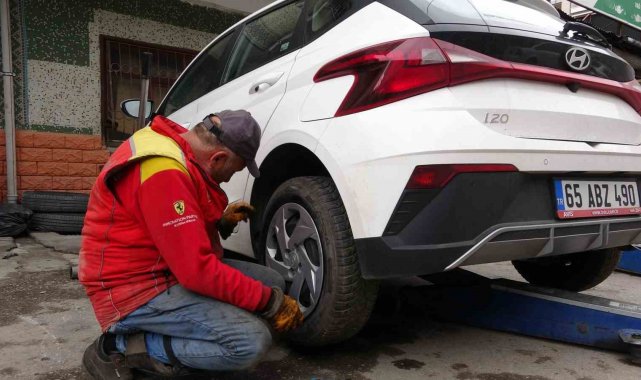 Van'da kış lastiği takma zorunluluğunun bugün itibarıyla başlamasıyla birlikte kentteki oto lastikçilerde yoğunluk yaşanmaya başladı.