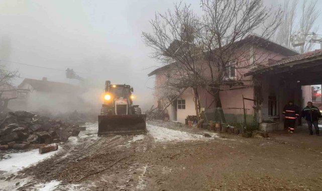 Kütahya'nın Domaniç ilçesine bağlı Bükerler köyünde sabaha karşı çıkan yangın, iki katlı bir evin tamamen yanarak kullanılamaz hale gelmesine sebep oldu.