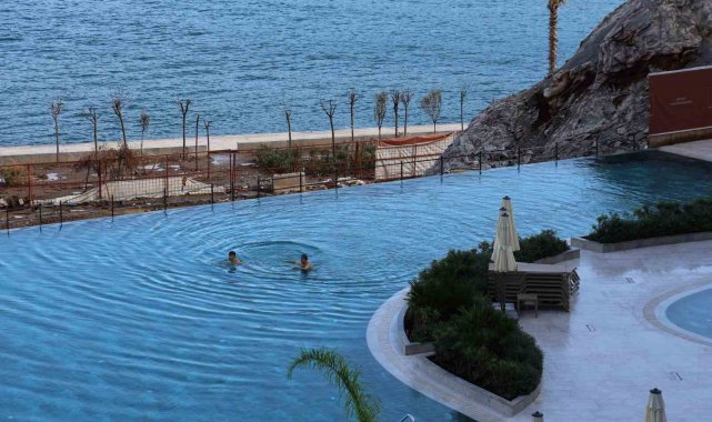 Türkiye turizm sektörünün son yıllardaki en büyük yatırımlarından biri olan ve turizm dönemini 12 aya yayan Kızılbük'te tatil yapan turistler kış ortasında denizin dibindeki havuzlarda yüzmenin keyfini yaşıyor. Deniz suyu sıcaklığının 24 havuz suyu sıcaklığının ise 28 derece olduğu Kızılbük'teki tesislerde yazdan kalma manzaralar görenleri şaşırtıyor.